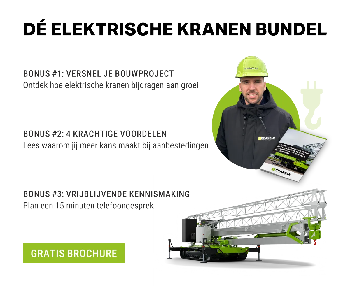 Kraxcle kranen zijn bovendien zelfrijdend en binnen een half uur operationeel: ideaal voor bedrijven die snelheid en flexibiliteit belangrijk vinden. Door de vaste ballast en het onderhoud wat wij in eigen beheer hebben, zijn de operationele kosten laag en de betrouwbaarheid hoog. Zo haal je meer uit elk project én bouw je aan een sterker, duurzamer imago richting klanten en opdrachtgevers.